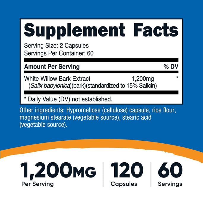 - 1200 mg of White Willow Bark Extract Per Serving: Each serving delivers a powerful 1200 mg of white willow bark extract.