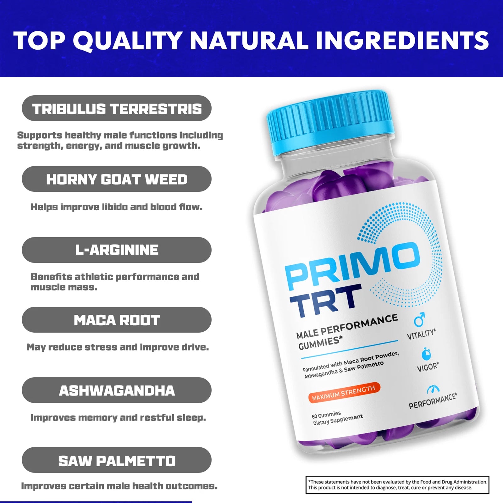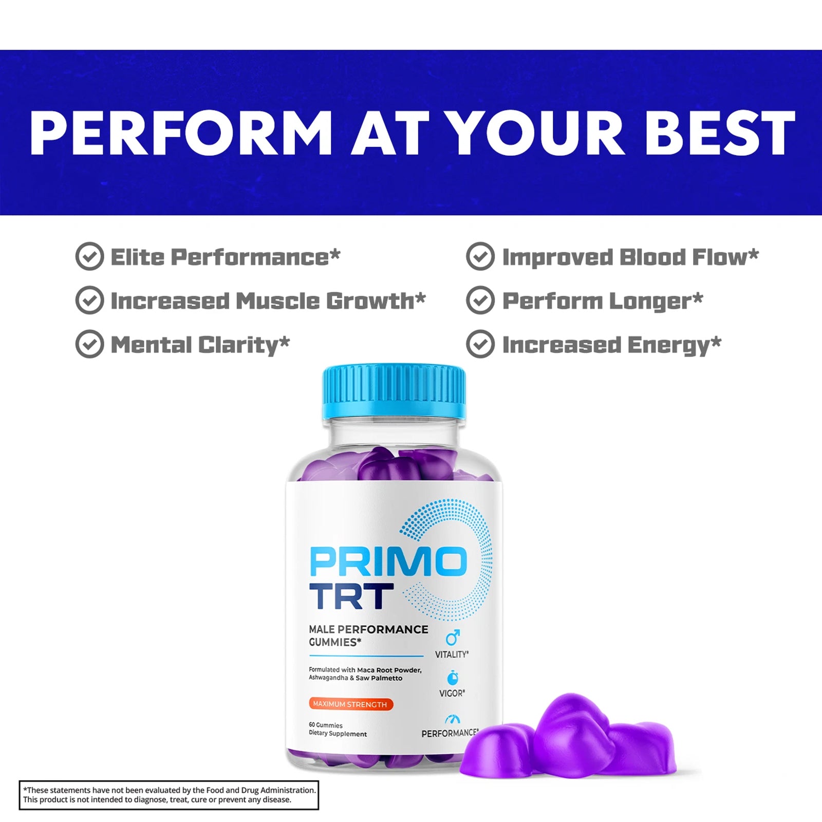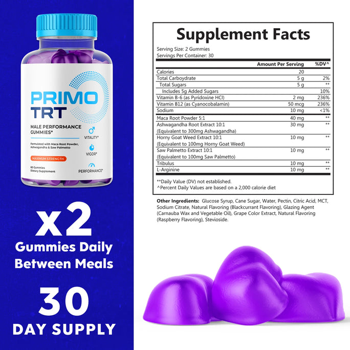 Primo TRT – Original PrimoTRT Gummies with a Premium Natural Blend to Help Support Sustained Energy, Active Body & Daily Performance | Great-Tasting, Easy-to-Chew Gummys (60 Gummies)