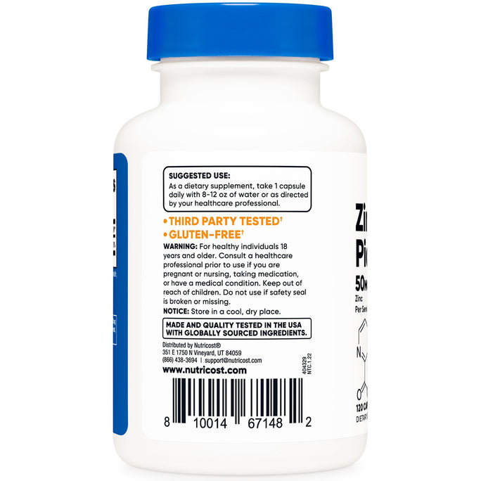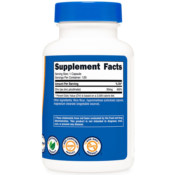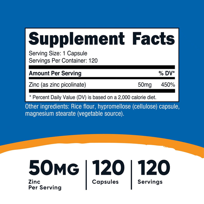 Zinc Picolinate Nutricost 50mg of Zinc per serving 1 capsule 1 serving