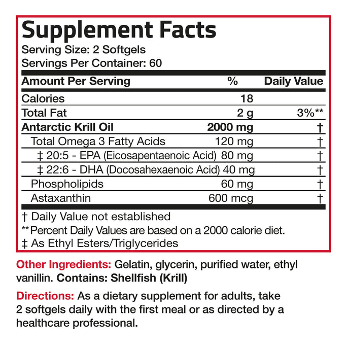 Antarctic Krill Oil 2000mg with Omega-3s EPA DHA and Astaxanthin 120 Softgels