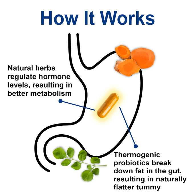 Thermogenic Probiotics mimic the thermogenic effect of exercise by generating heat in the gut to burn fat.