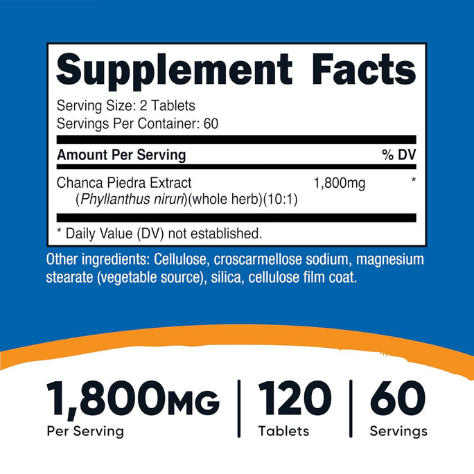 - 800mg of Potent Chanca Piedra Extract Herbal Supplement: Nutricost Chanca Piedra Extract is a powerful dietary supplement that contains 1,800mg of Chanca Piedra Extract per serving, making it a potent and effective option for those looking to support their overall health.